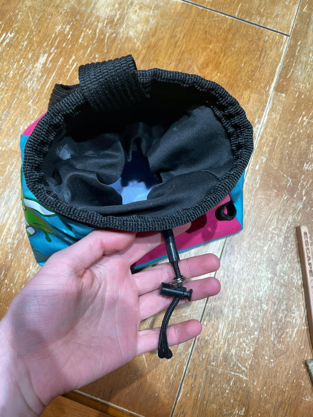 We know how frustrating it can be to deal with leaking chalk and difficult-to-access bags. That’s why we focused on creating a chalk pot tailored to your needs. Our chalk pot features a sewn-on webbing top that stays open, making it easy for you to get your hands in quickly. The seal is positioned below the opening, providing a tight closure without compromising on comfort. Plus, it's made with recycled fabric, so you can feel good about your choice. With the Escape Climbing Chalk Pot, you can enjoy a cleaner, more efficient, and all around more sustainable bouldering session.