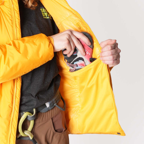 • Designed in the Cold North - Being based in Minnesota, we know cold. Lots of our climbing season is spent in the dead of winter, climbing ice pillars or frozen fingers. That's we we built a burly Belay Jacket for the harshest conditions.