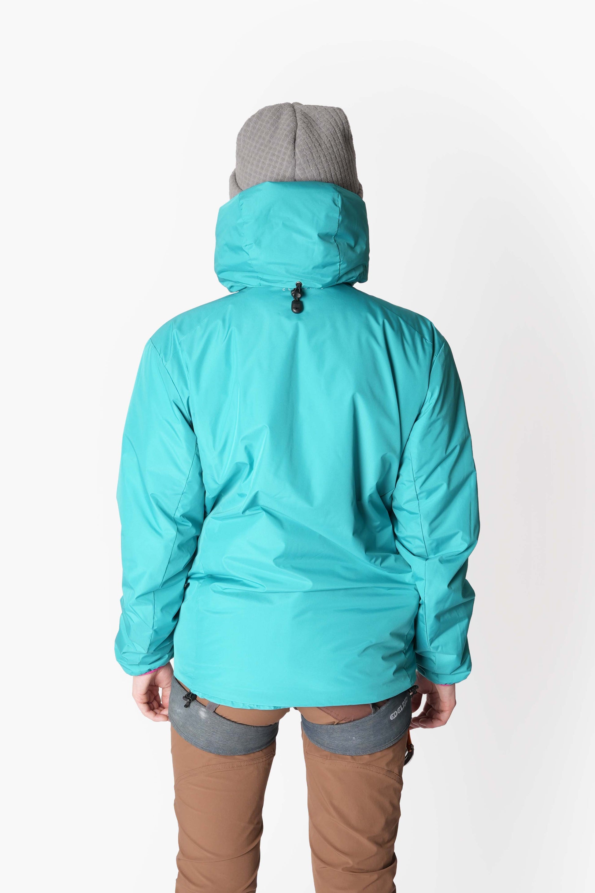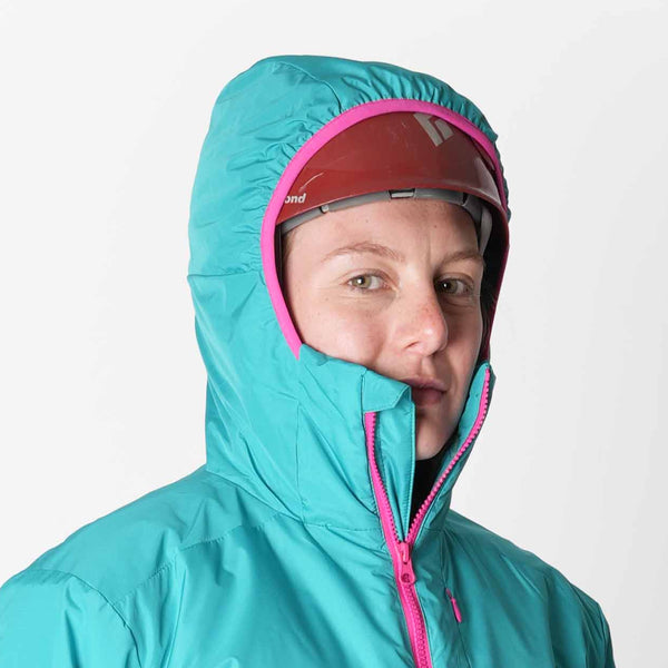 • Built-In Climbing Features - Designed with a belay snap and bottom up zipper for easy belaying. Inside pockets to keep your phone battery alive, and a helmet compatible hood.