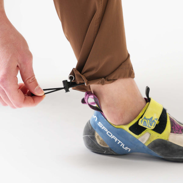 Built for movement, focus, and the grind of real rock days. The Smith Climbing Pants use a durable, stretchy fabric that moves with you on high steps and heel hooks while staying tough against granite and gym abuse. Deep, low-profile hand pockets sit comfortably with a harness so nothing digs or bunches, and a secure back zipper pocket keeps essentials locked in when you’re on the wall. With adjustable ankle cinches to keep fabric out of the way and a fit that feels dialed from warm-ups to the send, these are the pants you’ll reach for every session.
